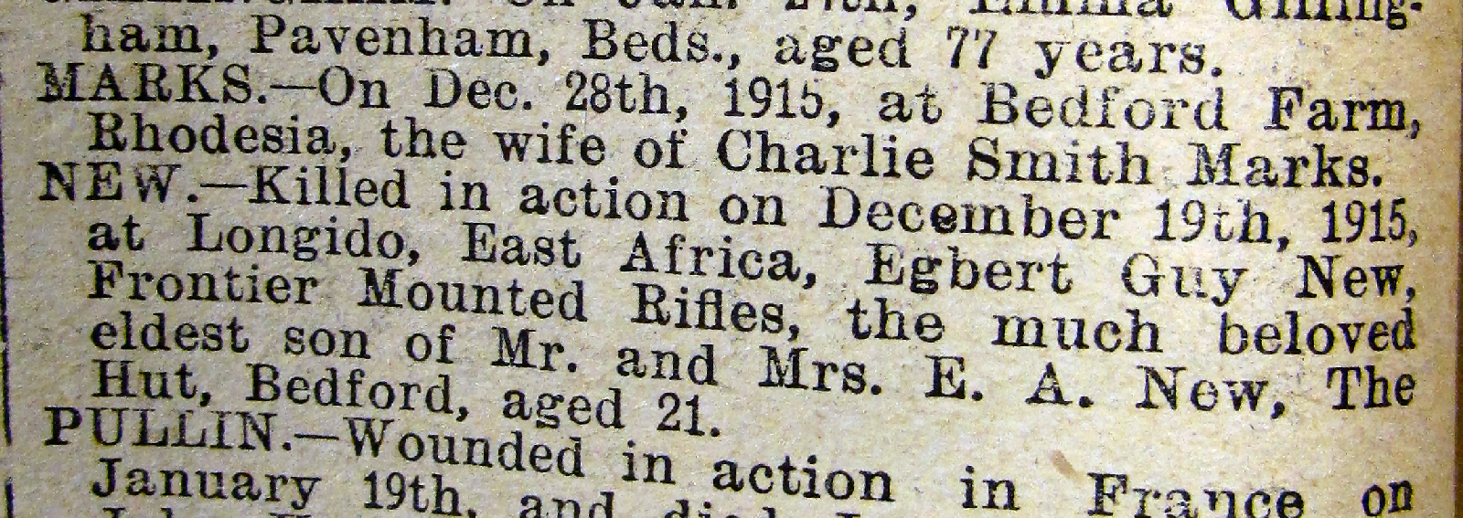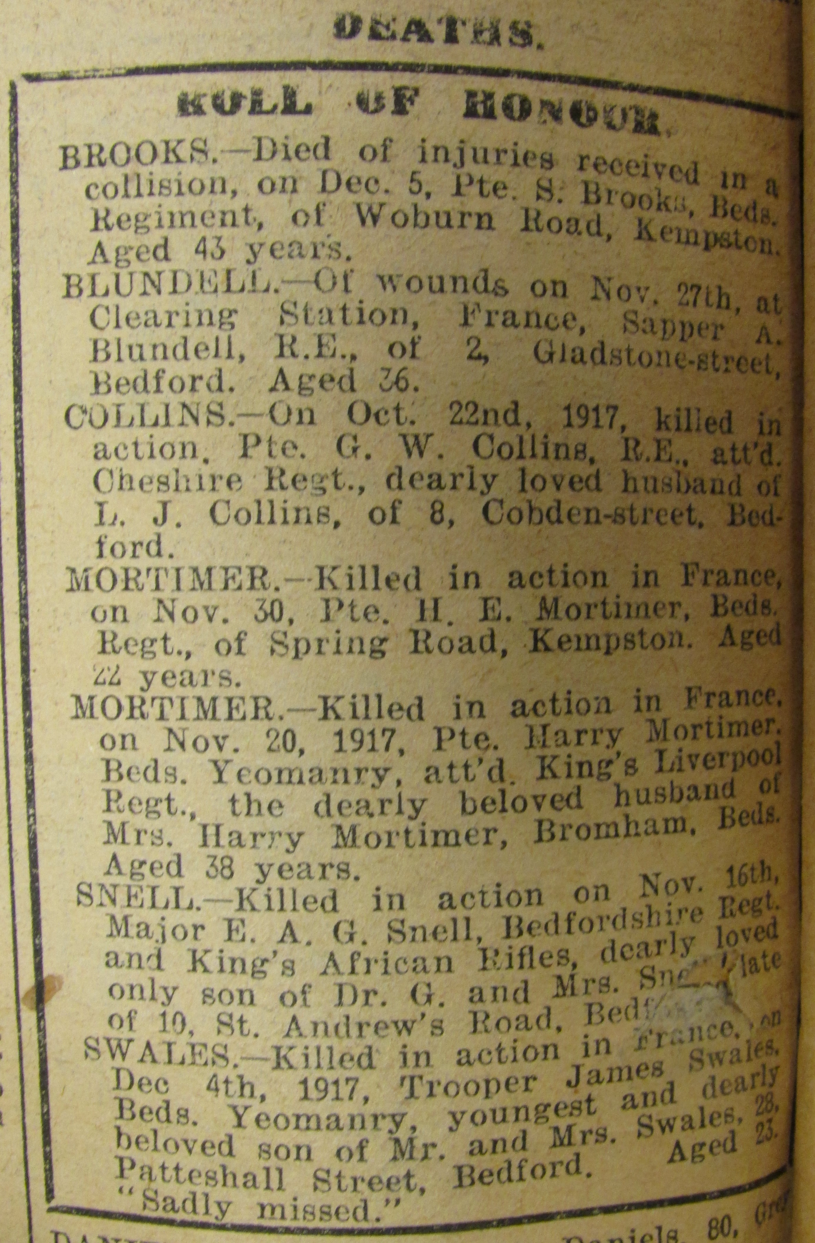 BEDFORDSHIRE Tuesday 10th December 1918. Grave D. 603. Extract