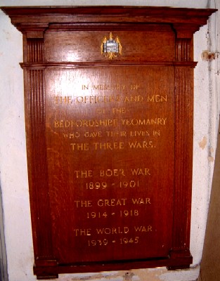IN MEMORY OF THE OFFICERS AND MEN OF THE BEDFORDSHIRE YEOMANRY WHO GAVE THEIR LIVES IN THE THREE WARS THE BOER WAR 1899-1901 THE GREAT WAR 1914-1918 THE WORLD WAR 1939-1945