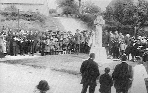 is a war memorial in the centre of the village. The memorial is a Celtic