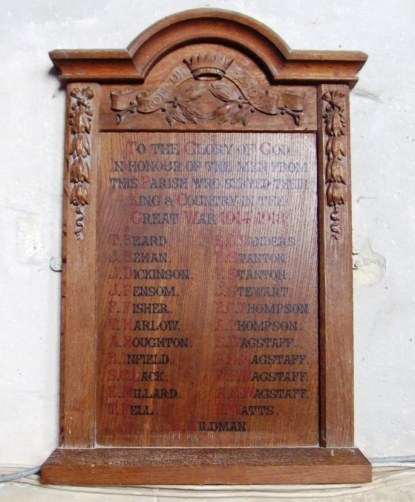 names for World War 1 and one for World War 2. The Roll of Honour, a