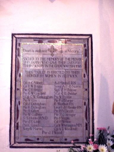 TABLET IS ERECTED TO THEIR HONOUR BY WOMEN IN FLITWICK.