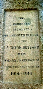 MEMORIAL IS ERECTED INHONOURED MEMORY OF THE LEIGHTON BUZZARD MEN