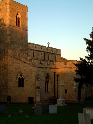 memorial stands in front of Stevington Church in the graveyard.