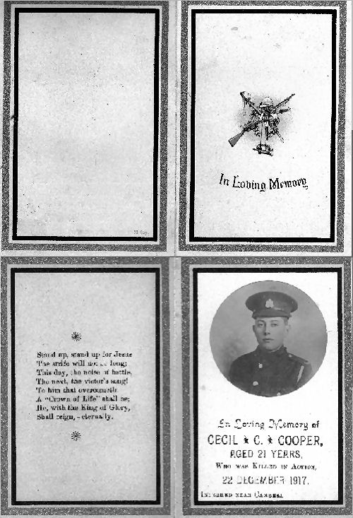 October 1917 in France & Flanders. Born and resident Stotfold,