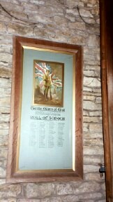 In the porch on the right of the church, a painting of a World War 1 soldier