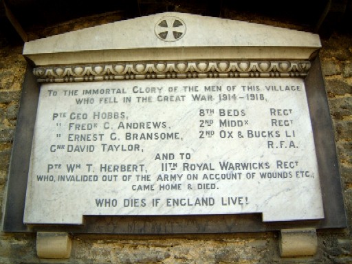Born and resident Newton Blossomville, enlisted Bedford. Commemorated