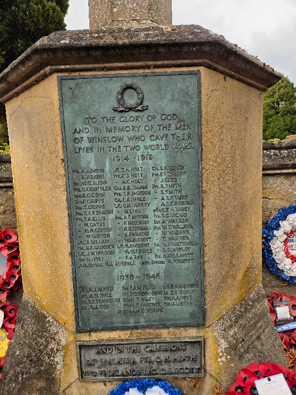 Flight Sergeant - possibly Harold Frederick HANCOCK, Flight Sergeant (Observer) 580443, 105 Squadron, Royal Air Force, Bomber Command. Killed in action flying out of Swanton Morley, Norfolk in a Bristol Belnheim IV, serial number V5828, when the aircraft was shot down by flak near Hafrsfjord, Norway, during an anti-shipping sortie on Beat 2 to Stavanger; operating from Lossiemouth on detachment 8 May 1941. Aged 21. Son of Joseph Henry and Maud Hancock, of Greenford, Middlesex. No kinown grave. Commemorated on RUNNYMEDE MEMORIAL, Surrey. Panel 36. There is no reason to associate this man with Winslow but he is the only man to fit the profile given. |