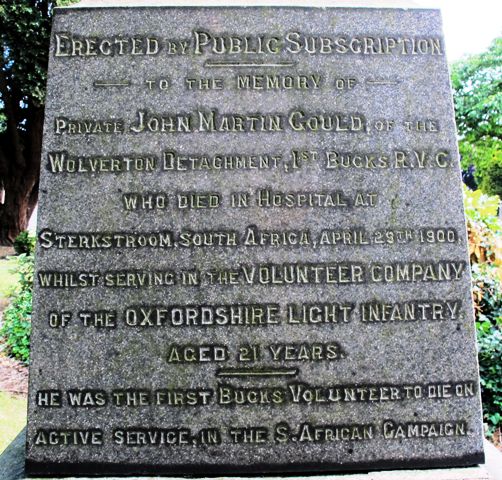 Private 7303, 1st Buckinghamshire (Volunteer Company), Wolverton Company, Oxfordshire Light Infantry. Died of dysentery in hospital at Sterkstroom, 29th April 1900. Aged 21. First Buckinghamshire Volunteer to die in the South African Campaign. Also commemorated on memorials at Coombe Hill, Wendover, Buckinghamshire, Aylesbury and Headington. |