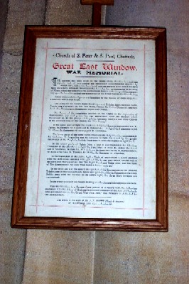 Inside the church of Saints Peter and Paul is a stained glass window dedicated to the world war.
