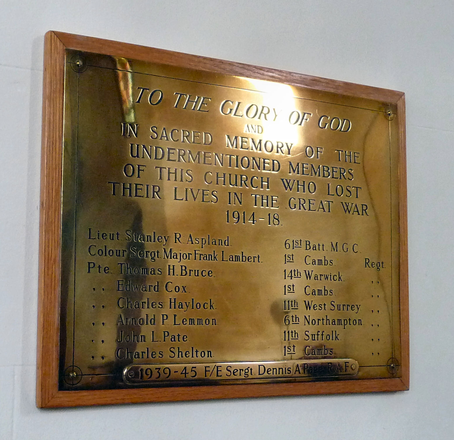 Richard  | Temporary Second Lieutenant, 61st Battalion, Machine Gun Corps. Killed in action 3 October 1918. Aged 27. Born 13 April 1891, baptised 24 May 1891 in Ely, Wesleyan Methodist, resident of Ely, son of Richard and Fanny Aspland. Son of Richard and Fanny Aspland; husband of Eva Carrie (nee Fisk) Aspland (born 27 April 1890), of "Hardcroft," Fordham Road, Soham, Cambs, married July to September Quarter 1916 in Newmarket Registration District, Cambridgeshire. Admitted to Ely, Market Street Infants' School 19 May 1895, son of Richard Aspland, resident West Fen Road. In the 1901 census he was aged 9, born Ely, Cambridgeshire, son of Richard and Frances Aspland, resident West End, Ely St Mary (Isle of Ely), Ely, Cambridgeshire. In the 1911 census he was aged 19, born Ely, Cambridgeshire, a Gas Clerk, son of Richard and Frances Aspland, resident West End, Ely, Ely St Mary, Cambridgeshire. In the 1914 Electoral Register for Ely St Mary he was resident at Hilla Lane, Ely with is father Richard Aspland. In the 1918 Electoral Register for Soham he and his wife are listed at Brook Street, Soham East. Buried in Laventie Military Cemetery, La Gorgue, Nord, France. Plot IV. Row F. Grave 6. See also Ely World War 1 Memorial Extract from England & Wales Government Probate Death Index 1919: