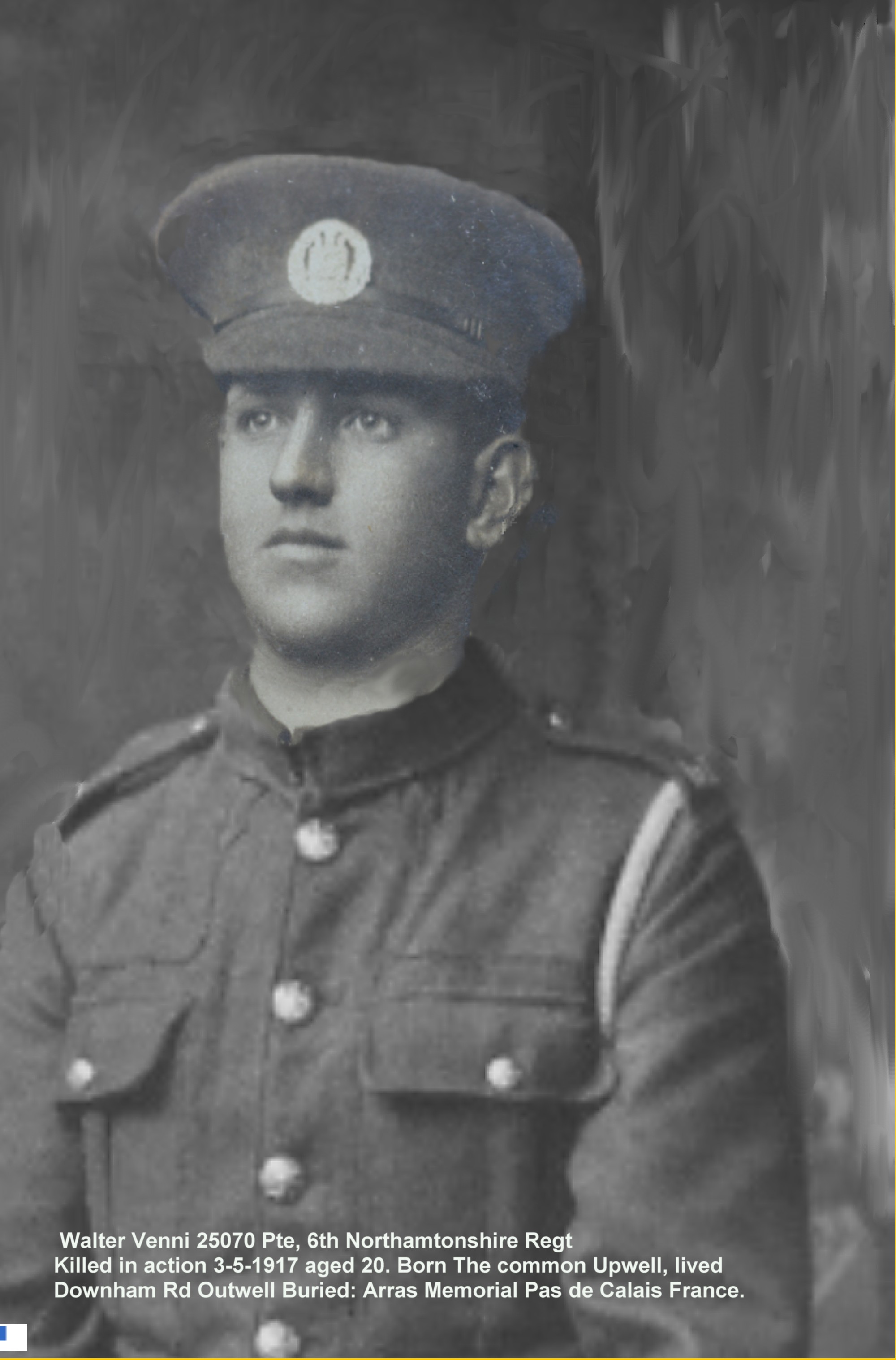 and Derbyshire Regiment). Killed in action 23 March 1918. Born Outwell,