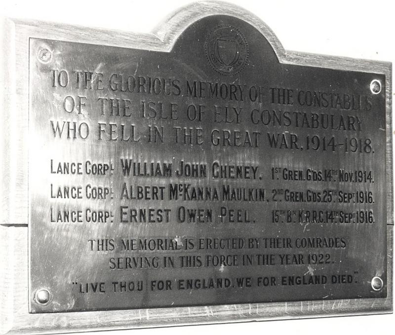 THE GLORIOUS MEMORY OF THE CONSTABLES OF THE ISLE OF ELY CONSTABULARY WHO FELL IN THE GREAT WAR, 1914-1918 | ||
