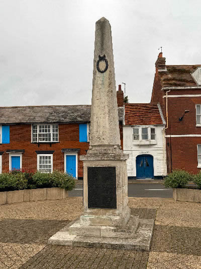 | The memorial which has been erected at Burnham-on-Crouch to the memory of the men from the parish who fell in the Great War was unveiled and dedicated on Sunday afternoon. It stands on a square island plot of ground opposite the Council buildings, between the High Street and the river. Through the good offices of Mr F. B. Pitcher, the services of Mr. E. Frank Atkinson, F.R.I.B.A., of Queen Anne's Gate, were obtained as honorary architect, and he prepared a design as proportionate as it was unique The site was all levelled to the Quay, and is approached from the High Street and the two sides by broad flights of stone steps. In the centre of the site is an obelisk, standing on a base, on two sides which appear the names the 98 men from the parish belonging to the Army, the Navy, and the Mercantile Marine, who lost lives. On the High Street and river fronts is laurel wreath in bronze, and the following inscription:—" To the memory of those from this parish who gave their lives for their country. 1914-1919." The names are cast on bronze, both this work and the laurel wreaths having been carried out at the Mildmay Ironworks, Burnham. Half the names appear on a plate on the High Street, and the other half on a plate on the river side. The full list is as follow: C. Aldis, W. J Aldis, E. Ambrose, P. F. Ambrose, G. J. Attenborough, H. Attwood, A. J. Barker, W. S. Barker, W. Barker. B. Barnard. C. G. Bourne, A. Bridge, C. E. W. Browne, F. W. Carter, F. R. Clark. W. F. Clark, A. J. Clarke, J. R. Clarke, W. Clow, C. A. Cook, W. G. Cooch, G. Cooper, Arthur B Croxon, Abraham B. Croxon, C. W. Cullem, J. F. Cundy, E. Cundy. A. R. Dilliway, G. G. Dilliway, F. W. Flick, H. Foot, G. Ford, K. T. Freeman, J. H. Gibson, B. C. Hammond, A. J. Hawkes, G. A. Hawkes, W. C. Hawkes, S. Hawkins, E. Hitchen, L. W. Hudson, S. Hart, H. Humphries, H. Jennings, H. S. Larter, G. U. Laws, R. J. Lipscombe, H. W. Livermore, T. Mapes, C. W. Mitchell, H. A. Moreton, A. C. T. Moss, W. Nicholls, S. Newman. R. A. Norris, A. G. Nunn, F. L. Osborne, J. J. Page, J. N. Page, T. Parchment, J. D. Parchment, C. J. Partridge, F. Perry, H. C. Player, C. E. Prior, F E. Ralph, A. J. Ravment, S. E. Richmond. A. Robinson, S. G. Sains, A. E. Sains, G. Smart, F. J. Smith, S. T Smith, A. J. Spooner, F. Alfred Stanes, Arthur Stanes. W. T. Stebbings, F J. Thomas, A. L. Trussell, W. Trussell, G. H. Tunbridge, H. I. Tunbridge, L. Turpin, E. B. J. Walter, S. C. Weedon, G. S. Wessell, A. Whiting, E. Whiting, J. F. Whiting, J. W. A. Willett, A. W. Witney, F. H. Woolf, H. Yardley, W. Yardley. IMPRESSIVE SCENE Probably the biggest crowd which has ever assembled in Burnham was present at the unveiling ceremony. A special stand was erected for the accommodation of the relatives of the fallen men, and the V.A.D. detachments. The Boy Scouts lined the memorial on the High Street side and the Girl Guides on the east side. The local Territorial detachment and a large, number of ex-Service men mustered at the Drill Hall, and marched to the site, under the command of Lieut. L. J. Dilliway, and headed by a detachment of the local coastguard and the combined bands of the Mildmay Ironworks and the Salvation Army. The Territorials and ex-Service men occupied the space at the west of the memorial, and the band, who led the singing of the hymns, formed up on the Quay. The service began with the hymn “O God our help in ages past,” after which the Rev. E. L. Lewis, Congregational minister, read the first seven verses of the 21st chapter of Revelations. The Lord's Prayer followed, and then Mrs. Leslie, who for the past six years has carried out wonderful work among sick disabled soldiers in Burnham and in London, pulled the string which held the national flags over the memorial, and so unveiled it. A beautiful hymn was sung, beginning |
