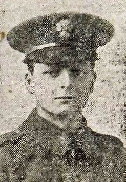 He volunteered in November 1914, and proceeded to the Western Front. where he took part in many important engagements, including those at Ypres and the Somme, and was wounded. He was killed in an air-raid whilst guarding German prisoners at Dunkirk, on September 24th, 1918, and was entitled to the 1914-15 Star, and the General Service and Victory Medals.