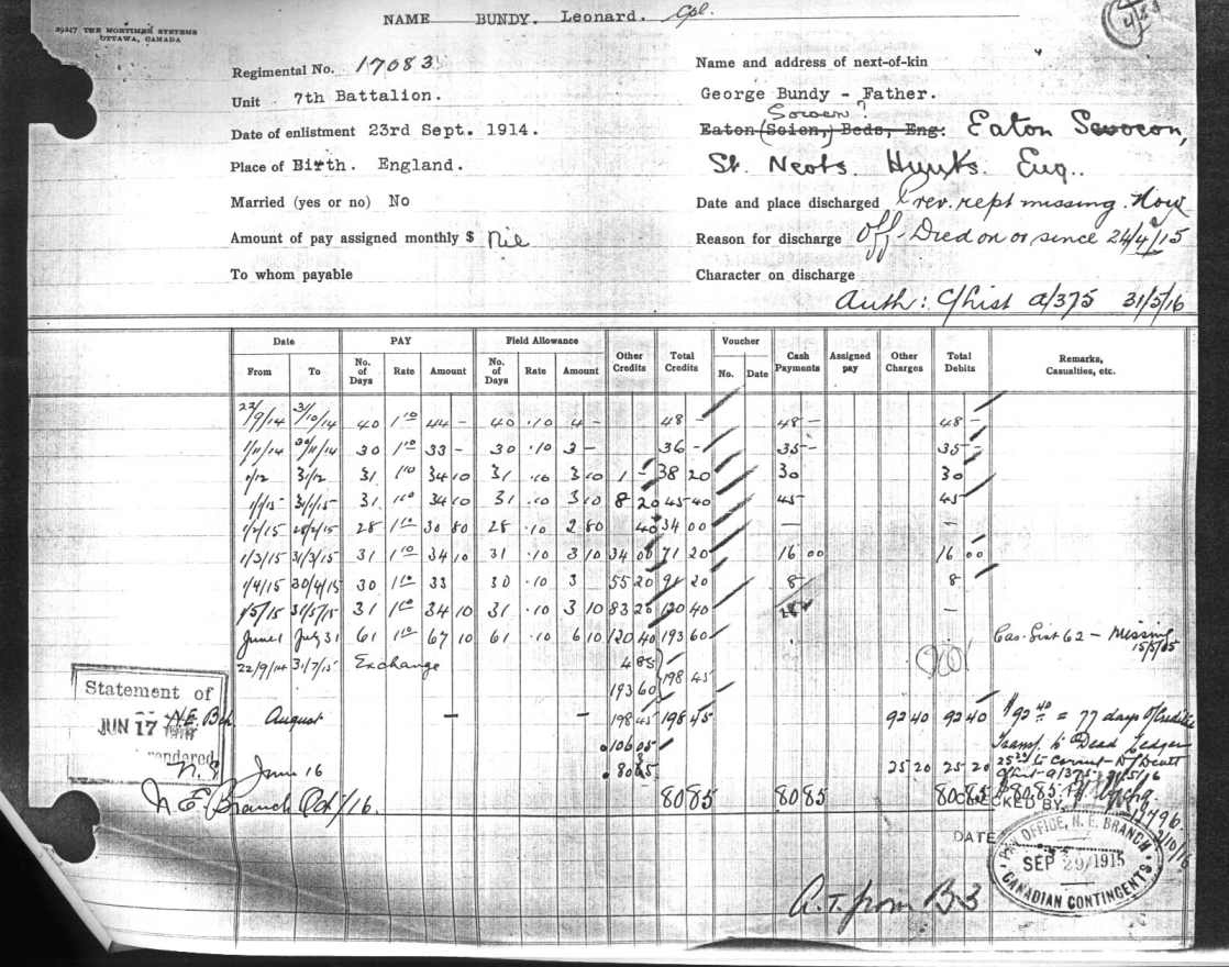 all that remained was his record of pay. Many men died and no remains