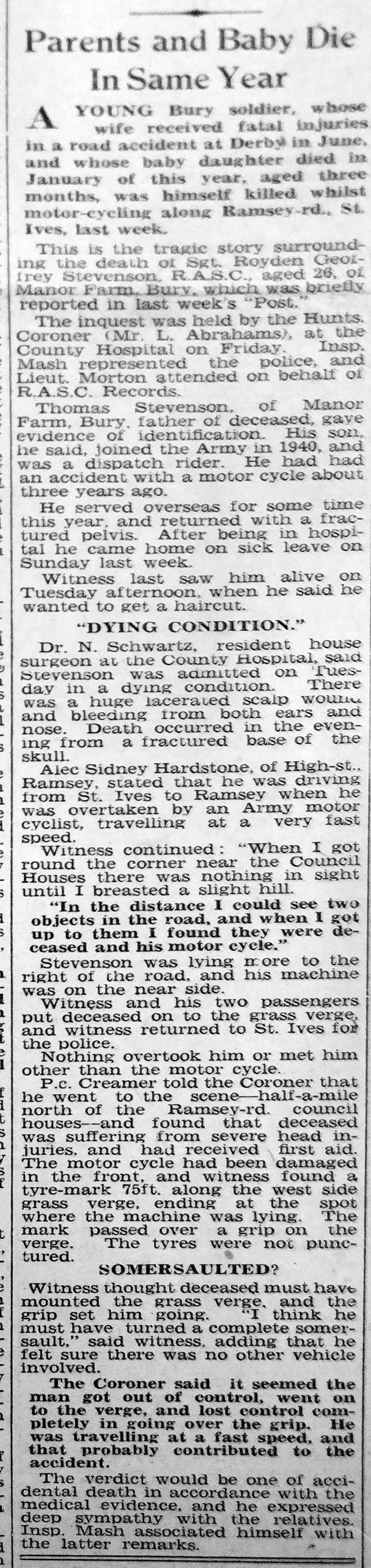 STEVENSON, ROYDEN GEOFFREY, Sergeant T/138985, Royal Army Service Corps. Died 5 December 1944. Aged 26.