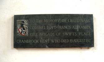 Major 155034, 1st Battalion, York and Lancaster Regiment. Died 22 January 1944. Aged 27. Born and resident Kent. Baptised 19 November 1916 in Great Chart, St Mary, Kent, resident Godinton, Great Chart, Kent. Son of Alexander Charles and Margaret Wilson; husband of Helen Mary Wilson (nee West), married October to December Quarter 1940 in Surrey North Western Registration District, Surrey. . Awarded the Military Cross (M.C.). Buried in MINTURNO WAR CEMETERY, Italy. Plot VI. Row F. Grave 14. Extract from The Courier 4 February 1944, page 6: "COURIER"