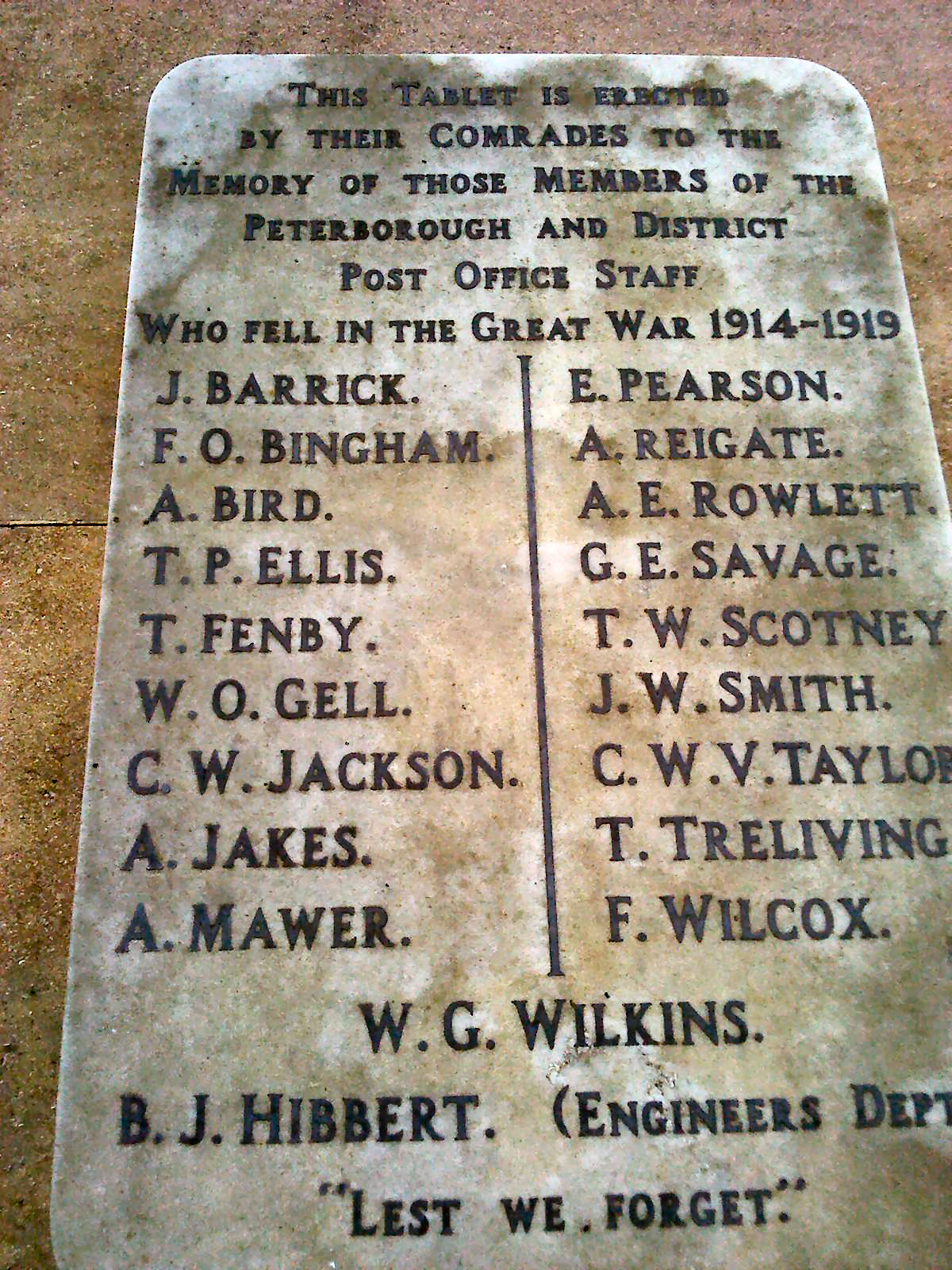 1911 census he was aged 26, born Peterborough, a Postman - G.P.O.,