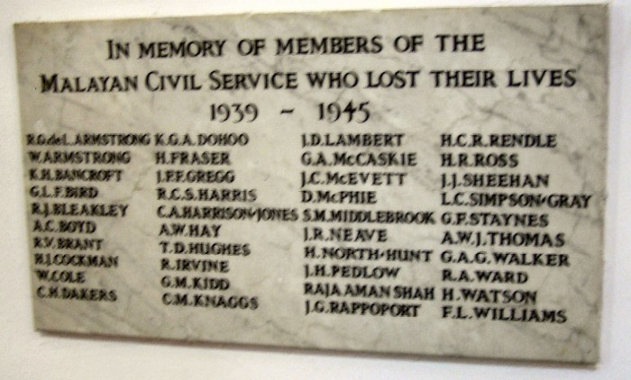 Singapore Malayan Civil Service War memorial listed those men from the