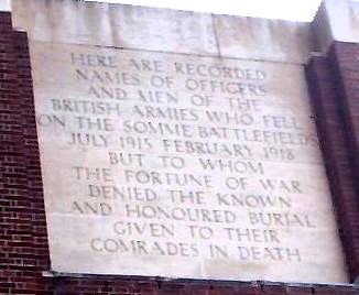 Thiepval Memorial, the Memorial to the Missing of the Somme, bears