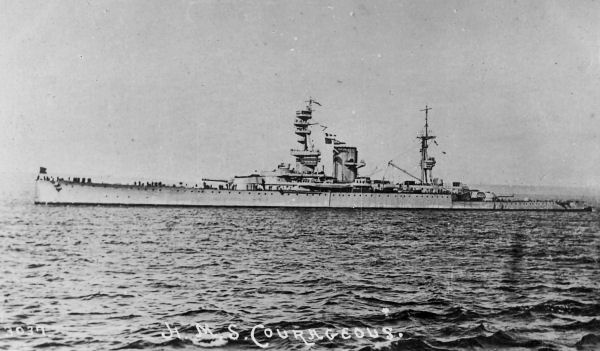 Courageous, built by Armstrong, Elswick, laid down March 1915.,