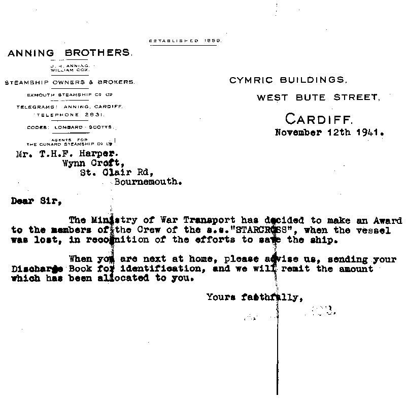 British freighter SS Starcross (4,662 GRT), from convoy SL.73, was torpedoed