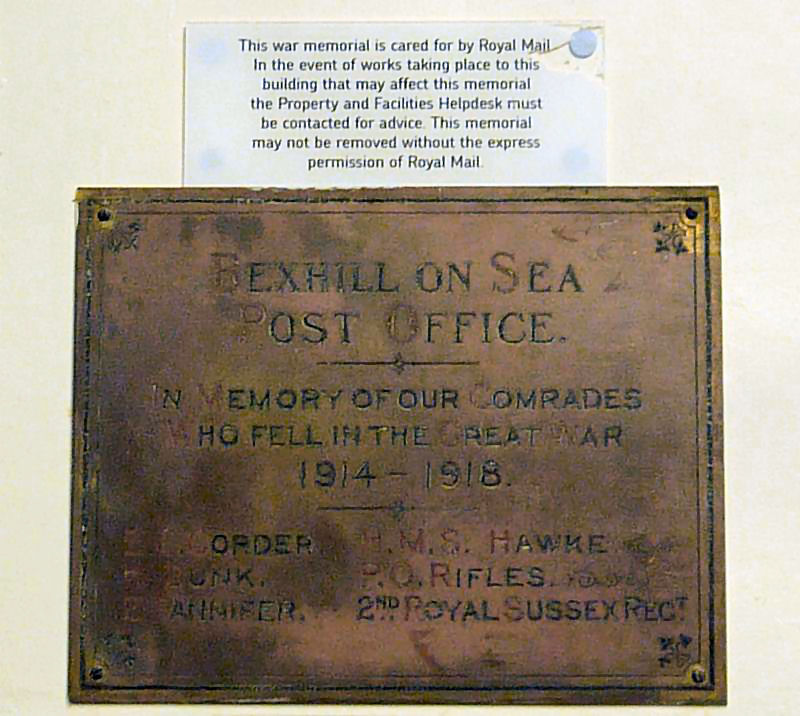 Ordinary Seaman Sussex 3/297, H.M.S. Hawke, Royal Naval Volunteer Reserve. Killed or died as a direct result of enemy action 15 October 1914. Born 28 February 1895. Birth registered in Eastbourne, Sussex. Brother of Mrs. N. Startup, of 36, Clarence Road, Eastbourne. In the 1901 census he was aged 5, born Eastbourne, Sussex, son of Frank and Nora Corder, resident 55, Leslie Street, Eastbourne, Sussex. In the 1911 census he was aged 15, born Eastbourne, Sussex, a Messenger Boy, brother of Charles Corder, resident 24, Gilbert Road, Eastbourne, Sussex. Appointed Temporary Assistant Postman 12 December 1912. No known grave. Commemorated on PORTSMOUTH NAVAL MEMORIAL, Hampshire. Panel 6. Extract from Bexhill-on-Sea Observer - Saturday 24 October 1914, page 9: BEXHILL POST OFFICE RESERVIST ON THE "HAWKE."
