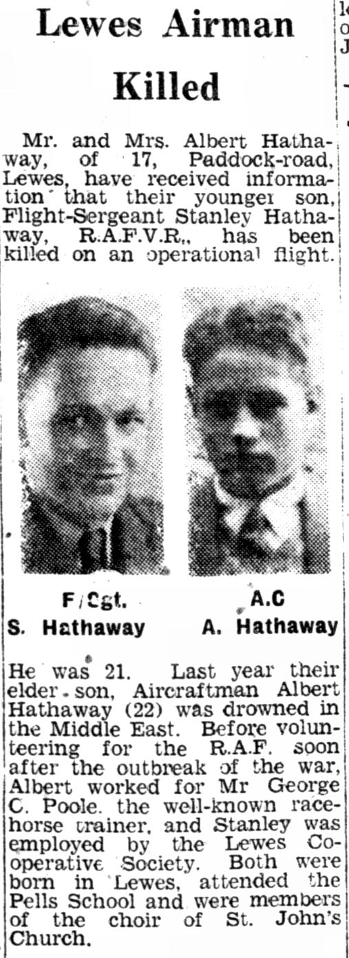Sergeant (Navigator/Bomb Aimer), 100 (Bomber) Squadron, Royal Air Force Volunteer Reserve. Killed in action in the Middle East 17 October 1943 Aged 28. Son of Albert William and Harriett Smith of 3, St. Pancras Gardens, Southover Buried in Ramleh War Cemetery, Lydda, Tel Aviv, Israel |