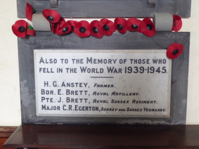 Major 36354, 98 (The Surrey and Sussex Yeomanry) Field Regiment, Royal Artillery. Killed in action 25 May 1940, initially reported missing near Hazebrouck on a scouting mission. Aged 33. Born 27 April 1907 in London, resident Sussex. Son of Charles A. and Lady Mabelle Egerton, of Mountfield, Sussex. B.A. (Oxon); brother of Edward Brassey Egerton (killed in World War 1, see above). In the 1911 census he was aged 3, born St Georges, Hanover Square, London, resident with his parents, Charles Augustus and Mabelle Annie Egerton, at Mountfield Court, Robertsbridge, Mountfield, Sussex. Educated at Winchester College, entered the school as an Exhibitioner, becoming Head of his House in 1923. In the 1938 Kelly's Directory for Sussex he is listed under Shermandbury as being Captain Charles Ralph Egerton, a private resident, living at The Sparrows, Wineham. Buried in TERLINCTHUN BRITISH CEMETERY, WIMILLE, Pas de Calais, France. Plot 15. Row E. Grave 4. See also Shermanbury and the Lloyd’s of London War Memorial. Extract from Probate December 1940: EGERTON Charles Ralph of Sparrows Henfield Wineham Sussex died 25 May 1940 on war service Probate Llandudno 15 December to Barclays Bank Limited. Effects £76006 11s. 4. |
