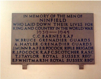 MEMORY OF THE MEN OF NINFIELD WHO LAY DOWN 1939 - 1945 IN