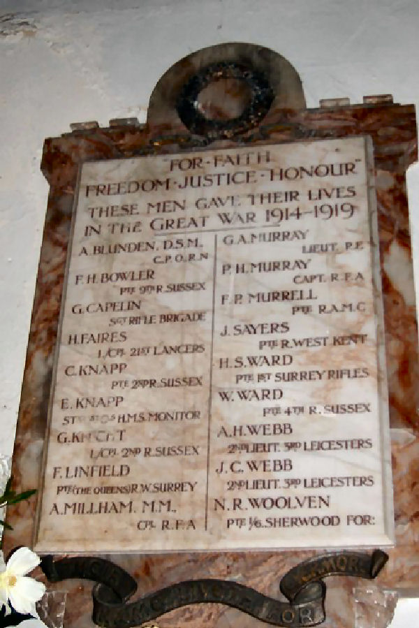 Also included on the Old Comrades Memorial, West Grinstead and also on Partridge Green War Memorial. |