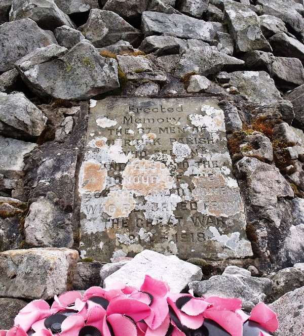 1914-18 War. The names of the 87 who were killed are marked on the scroll
