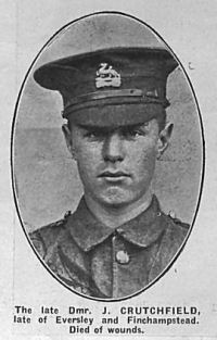 Private 28824 2nd Battalion Royal Berkshire Regiment-born Eversley-enlisted Reading- Killed in action 2nd April 1918 (on memorial shown as 21st March 1918)-Buried in Ham British Cemetery Muille-Villette grave I.A.16. |