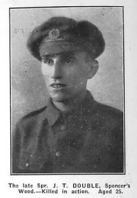 6th October 1915 aged 25, son of Mr C S and Mrs E Double of "Holmleigh"