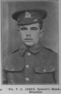 enlisted Reading. Son of Mr and Mrs T Jones of Spencers Wood, Reading.