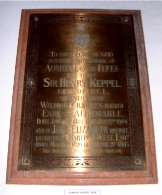 Admiral of the Fleet, Royal Navy. Died 17th January 1904. Born 14th June 1809. Son of the 4th Earl of Albemarle and of his wife Elizabeth, daughter of Lord de Clifford. He entered the navy from the old naval academy of Portsmouth in 1822. He became lieutenant in 1829 and commander in 1833. His first command was largely passed on the coast of Spain, which was then in the midst of the convulsions of the Carlist War. Captain Keppel had already made himself known as a good seaman. He was engaged with the squadron stationed on the west coast of Africa to suppress the slave trade. In 1837 he was promoted post captain, and appointed in 1841 to the service in China and against the Malay pirates, a service which he repeated in 1847, when in command of HMS Maeander. In May 1853 he was appointed to the command of the new steam line-of-battle ship HMS St Jean d'Acre. When the Crimean War broke out on 1854, the St Jean d'Acre formed part of the Baltic Fleet. Keppel witnessed the fall of Bomarsund. In 1855, St Jean d'Acre was sent to the Black Sea. On 21 July 1855, Keppel swapped commands with the captain of the sailing line-of-battle ship Rodney, whose crew was all ashore. Keppel served as commander of the Naval Brigade which was besieging Sebastopol. After the Crimean War he was again sent out to China, this time in command of the Raleigh, as commodore to serve under Sir M. Seymour. The Raleigh was lost on an uncharted rock near Hong Kong, but three small vessels were named to act as her tenders, and Commodore Keppel commanded in them, and with the crew of the Raleigh, in the action with Chinese pirates at the Battle of Fatshan Creek (June 1, 1857). He was honourably acquitted for the loss of the Raleigh, and was given command of HMS Alligator, which be held until his promotion to rear-admiral. For his share in the action at the Battle of Fatshan Creek he was made KCB. The prevalence of peace gave Sir Henry Keppel no further chance of active service, but he became Commander-in-Chief, Cape of Good Hope and West Coast of Africa Station in 1860, Commander-in-Chief, China Station in 1867 and Commander-in-Chief, Plymouth in 1872. He retired from the active list in 1879, two years after he attained the rank of admiral of the fleet. Keppel married twice: firstly Katherine Louisa Crosbie, daughter of General Sir John Crosbie on 25 February 1839 and secondly Jane Elizabeth West, daughter of Martin John West on 31 October 1861. By his second wife, he had one son, Colin Richard Keppel, and one daughter, Maria Walpole Keppel, who married Admiral Sir Frederick Tower Hamilton. Keppel Harbour in Singapore is named after him. He lived at Grove Lodge at Winkfield Row in Berkshire and is buried in the parish church at Winkfield. Keppel's relationship with Lady Eliza Lucy Grey was discovered by her husband Sir George Grey in 1860, and this, together with accusations of infidelity against Sir George Grey, led to the breakdown of their marriage. [Source: Wikipedia – Henry Keppel]