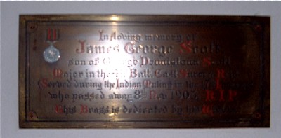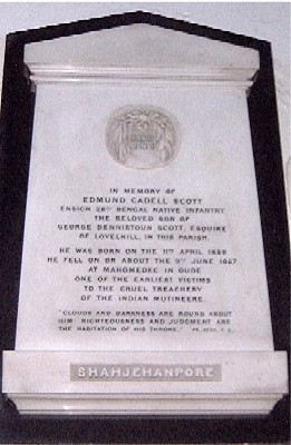 Ensign, 28th Battalion, Bengal Native Infantry. Killed in action circa 9th June 1857 at Mahomedee Oude in the Indian Mutiny. Born 11th April 1839. Son of George Dennistoun Scott, Esq., of Lovehill, Winkfield. Brother of James below.