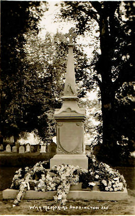The Doddington War Memorial was dedicated by the Rev. A.F. Smith, (Rector in charge), on 23rd September, 1920. It was unveiled by Mrs. C.E. Stephens, wife of the village Doctor. The monument was designed and built by Mr. Robert Wade of Doddington. On the same day the plaques inside the church and the Methodist Chapel were also unveiled.