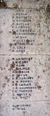 Private 16254, 11th Battalion, Suffolk Regiment. Died of wounds on Friday, 31 March 1916. Aged 17. Born 1899 in Littleport, enlisted Ely. Native of Brandon Bank. Son of Elijah and Rebecca Wilding, of Redmere Farm, Brandon Bank, Norfolk. Buried in ETAPLES MILITARY CEMETERY, Pas de Calais, France. Plot VI. Row E. Grave 9. See also Ely World War 1 memorial, Littleport, and Redmere. Etaples is a town about 27 kilometres south of Boulogne. |