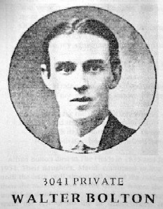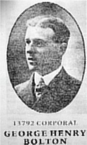 From a roll compiled by Caroline Burkitt that can be found in Cambridge Library, reference section: Son of Alfred Bolton, born 30th December, 1886. He went to school in Grantchester, and before the war, was chaffeur to Mr William Mirrlees of 11, Cranmer Road, Cambridge. When war broke out he enlisted in the 11th Battalion, Suffolk Regiment. He was killed in France on 22nd May 1916 and the Cambridge Chronicle of 7th June, reporting his death, said "The utmost sympathy is extended to the bereaved parents, the dead soldier being well known and very popular throughout the whole district. The following letter has been received by Mr & Mrs Bolton from a lieutenant of the company in which there son was serving " I am indeed truly sorry to have to inform you that your gallant son has been kileed whilst carrying out some very important work. All officers and men of the company unite in deepest sympathy for losing such a splendid comrade." |