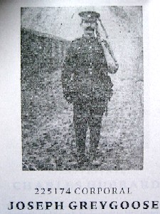 From a roll compiled by Caroline Burkitt that can be found in Cambridge Library, reference section: We do not Know what work Joseph did when he left school, nor when or why he came to Grantchester, but he was certainly here by 1903, working as bakers assistant to Mrs Jane Rayner. Joseph married the Rayners daughter, Maud Ellen on 23rd January 1904. Mr Rayner died in 1898 and Joseph and Maud spent their married life living with her mother in 8, Wrights Row. Together they ran the bakery at the back of the house and, later on, the Post Office and shop in the house next door, until Mrs Utteridge, who lived next to the church, became Post mistress. As well as helping his mother-in-law, Joseph, a tall well built man, was the village constable. In 1910 and 1913 he was elected to the Parish Council, and in 1912 became a trustee of the Gee charity. In 1910 and 1914 he was on the allotments committee which is perhaps suprising, in view of the fact that when, in 1908, he applied to the County Council for permission to rent a five acre small holding, the Townlands Charity Committee reported that Joseph already had an allotment which" he farms very indifferently". Joseph joined the Cambridgeshire Regiment with an army number of 3399. He was later transferred to the 7th battalion The Northamptonshire Regiment and by October 1918 was in France. On 16th October, at 7.30am, his battalion received sudden and unexpected orders to be ready to move in two hours time to Saint Aubert, almost due east of Cambrai, in support of the 72nd Infantry Brigade. At 1300 hours their was a fierce counter attack by the enemy and the battalion was forced back to the west bank of the river Haussy. At 1400 hours, two companies were ordered to relieve the remaining elements of the 8th East Surreys and the 8th West Kent Regiments. This was successfully done, but their were a few casualties, one of whom was Joseph Greygoose. Joseph was buried in the Haussy Cemetery with the other men who fell in that action. |