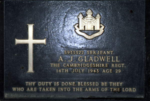 14th July 1943. Age 29. Son of Arthur John and Sarah Ann Gladwell;