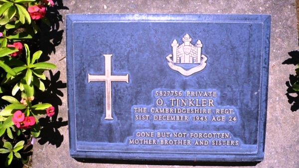 Owen | Private 1st Battalion, Cambridgeshire Regiment, died 31 December 1943. Aged 24. Buried in KANCHANABURI WAR CEMETERY, Thailand. Son of Jabzey Tinkler, and of Elizabeth Tinkler, of Benwick, Cambridgeshire. Extract from Cambrdgeshire Times: BENWICK