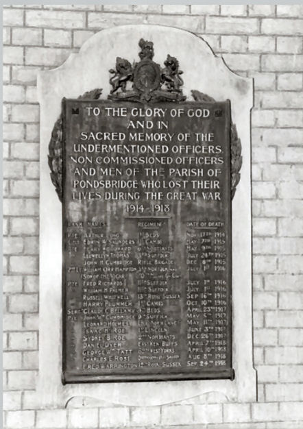 Ponders Bridge, Whittesley, Cambridgeshire. No known grave. Commemorated