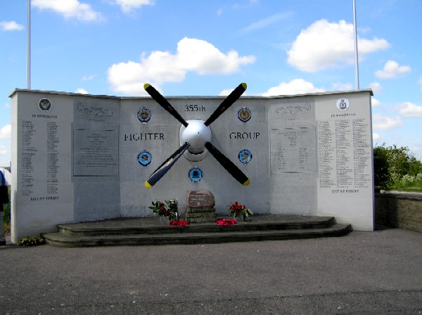 | MEMORIAL 335TH FIGHTER GROUP AND SUPPORT UNITS U S A A F 8TH AIR FORCE ACTIVATED ORLANDO FL 12 NOV 42 ARRIVED UK 6 JUL 43 FIRST COMBAT MISSION 14 SEP 43 LAST COMBAT MISSION 25 APR 45 OVER 1500 E/A DAMAGED-DESTROYED DISTINGUISHED UNIT CITATION 5 APR 44 OVER 2000 AMERICAN SERVICEMEN SERVED HERE DEDICATED 12 MAY 1981 |