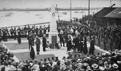 | The memorial which has been erected at Burnham-on-Crouch to the memory of the men from the parish who fell in the Great War was unveiled and dedicated on Sunday afternoon. It stands on a square island plot of ground opposite the Council buildings, between the High Street and the river. Through the good offices of Mr F. B. Pitcher, the services of Mr. E. Frank Atkinson, F.R.I.B.A., of Queen Anne's Gate, were obtained as honorary architect, and he prepared a design as proportionate as it was unique The site was all levelled to the Quay, and is approached from the High Street and the two sides by broad flights of stone steps. In the centre of the site is an obelisk, standing on a base, on two sides which appear the names the 98 men from the parish belonging to the Army, the Navy, and the Mercantile Marine, who lost lives. On the High Street and river fronts is laurel wreath in bronze, and the following inscription:—" To the memory of those from this parish who gave their lives for their country. 1914-1919." The names are cast on bronze, both this work and the laurel wreaths having been carried out at the Mildmay Ironworks, Burnham. Half the names appear on a plate on the High Street, and the other half on a plate on the river side. The full list is as follow: C. Aldis, W. J Aldis, E. Ambrose, P. F. Ambrose, G. J. Attenborough, H. Attwood, A. J. Barker, W. S. Barker, W. Barker. B. Barnard. C. G. Bourne, A. Bridge, C. E. W. Browne, F. W. Carter, F. R. Clark. W. F. Clark, A. J. Clarke, J. R. Clarke, W. Clow, C. A. Cook, W. G. Cooch, G. Cooper, Arthur B Croxon, Abraham B. Croxon, C. W. Cullem, J. F. Cundy, E. Cundy. A. R. Dilliway, G. G. Dilliway, F. W. Flick, H. Foot, G. Ford, K. T. Freeman, J. H. Gibson, B. C. Hammond, A. J. Hawkes, G. A. Hawkes, W. C. Hawkes, S. Hawkins, E. Hitchen, L. W. Hudson, S. Hart, H. Humphries, H. Jennings, H. S. Larter, G. U. Laws, R. J. Lipscombe, H. W. Livermore, T. Mapes, C. W. Mitchell, H. A. Moreton, A. C. T. Moss, W. Nicholls, S. Newman. R. A. Norris, A. G. Nunn, F. L. Osborne, J. J. Page, J. N. Page, T. Parchment, J. D. Parchment, C. J. Partridge, F. Perry, H. C. Player, C. E. Prior, F E. Ralph, A. J. Ravment, S. E. Richmond. A. Robinson, S. G. Sains, A. E. Sains, G. Smart, F. J. Smith, S. T Smith, A. J. Spooner, F. Alfred Stanes, Arthur Stanes. W. T. Stebbings, F J. Thomas, A. L. Trussell, W. Trussell, G. H. Tunbridge, H. I. Tunbridge, L. Turpin, E. B. J. Walter, S. C. Weedon, G. S. Wessell, A. Whiting, E. Whiting, J. F. Whiting, J. W. A. Willett, A. W. Witney, F. H. Woolf, H. Yardley, W. Yardley. IMPRESSIVE SCENE Probably the biggest crowd which has ever assembled in Burnham was present at the unveiling ceremony. A special stand was erected for the accommodation of the relatives of the fallen men, and the V.A.D. detachments. The Boy Scouts lined the memorial on the High Street side and the Girl Guides on the east side. The local Territorial detachment and a large, number of ex-Service men mustered at the Drill Hall, and marched to the site, under the command of Lieut. L. J. Dilliway, and headed by a detachment of the local coastguard and the combined bands of the Mildmay Ironworks and the Salvation Army. The Territorials and ex-Service men occupied the space at the west of the memorial, and the band, who led the singing of the hymns, formed up on the Quay. The service began with the hymn “O God our help in ages past,” after which the Rev. E. L. Lewis, Congregational minister, read the first seven verses of the 21st chapter of Revelations. The Lord's Prayer followed, and then Mrs. Leslie, who for the past six years has carried out wonderful work among sick disabled soldiers in Burnham and in London, pulled the string which held the national flags over the memorial, and so unveiled it. A beautiful hymn was sung, beginning |
