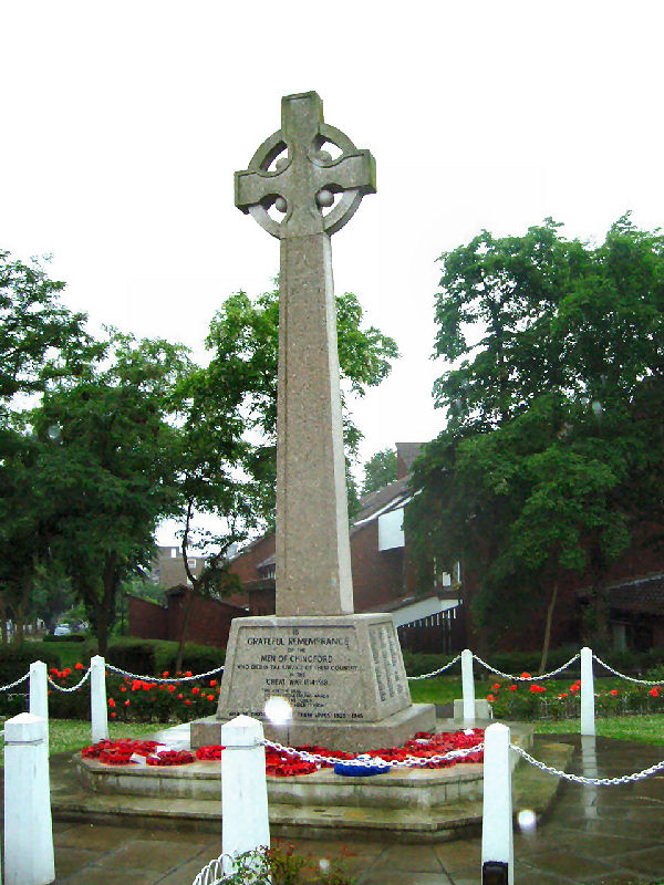 Extract from East End News and London Shipping Chronicle - Tuesday 27 September 1921, page 3: Lord Lambourne, Lord Lieutenant of Essex, unveiled a memorial cross on Saturday afternoon on the village green at Chingford, in memory of the men of the district who fell in the war. The cross was afterwards dedicated by the Bishop of Chelmsford, and subsequently Lord Lambourne opened a new United Services Men's Club for the town. |