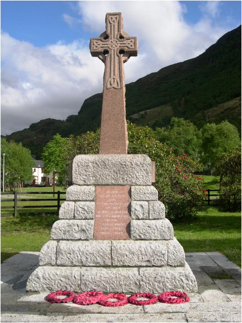 Kinlochleven, Lochaber and takes the form of a Celtic cross set on a