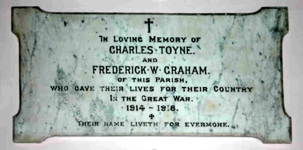 [Spelt TOYN on CWGC or SDGW] Private 13492, 6th Battalion, Lincolnshire Regiment. Killed in action at Gallipoli 7 August 1915. Aged 21. Born and resident Snarford, Lincs, enlisted Lincoln. Son of Luke & Elizabeth Toyn of Snarford. No known grave. Commemorated on HELLES MEMORIAL, Turkey (including Gallipoli). Panel 44 to 46. |