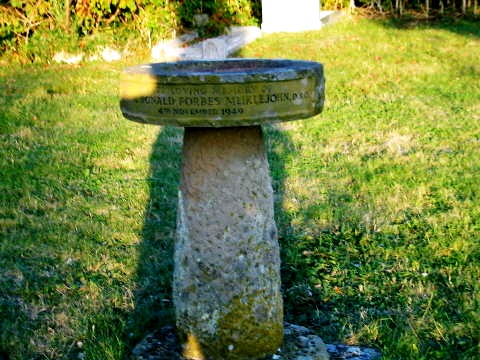 Birdbath Memorial in Churchyard to Lifelong Villager